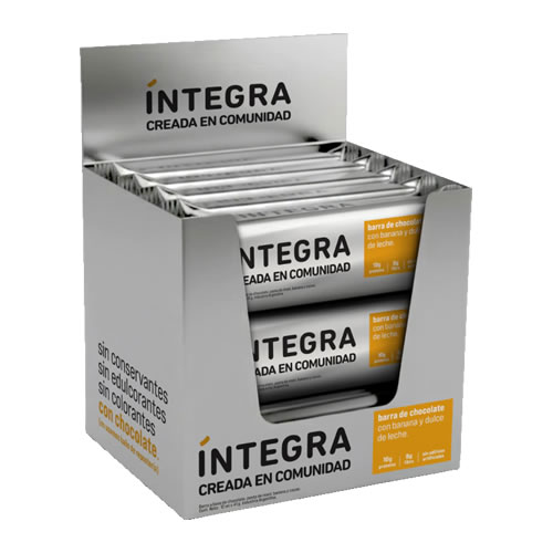 BARRA BAÑADA EN CHOCOLATE BANANA Y DULCE DE LECHE X 41 GRS – INTEGRA – CAJA X 12 UNIDADES