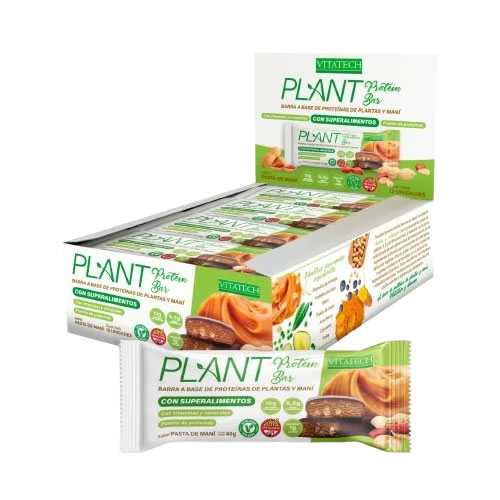 PLANT PROTEIN BAR PASTA DE MANÍ X 40 GRS – VITATECH – CAJA X 12 UNIDADES